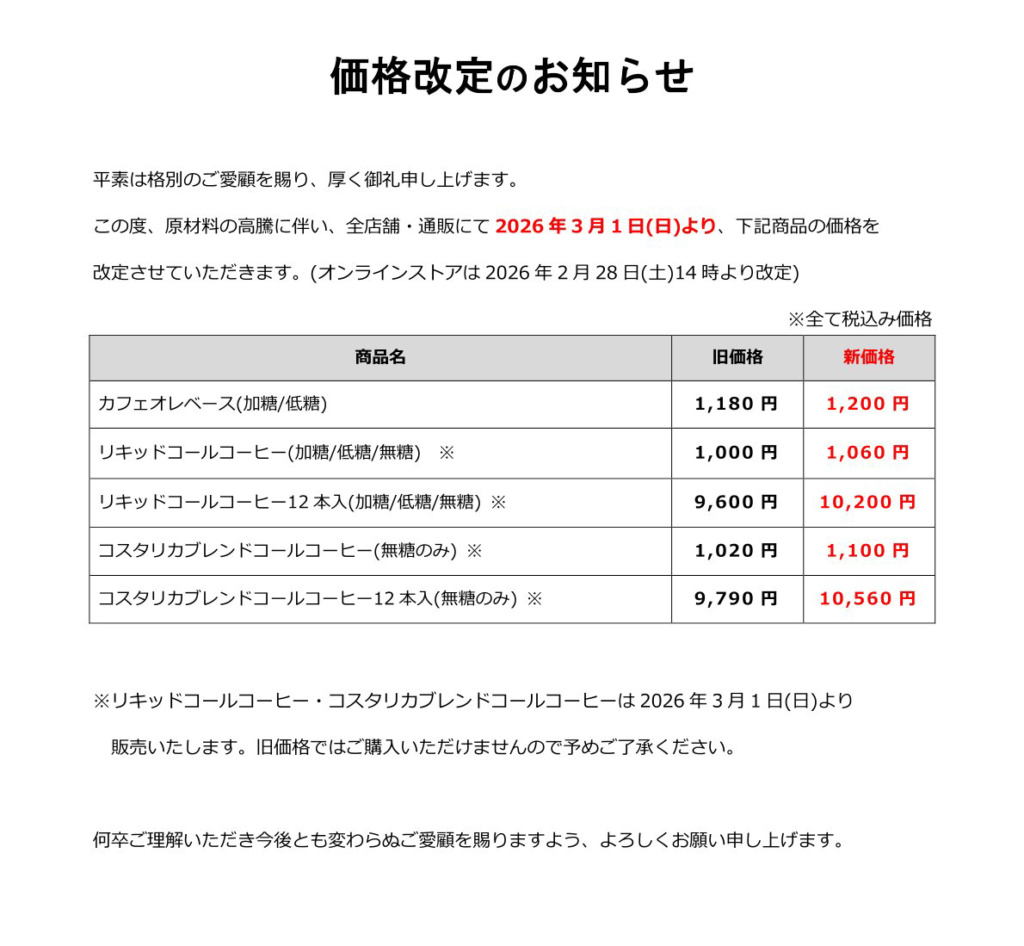 価格改定のお知らせ