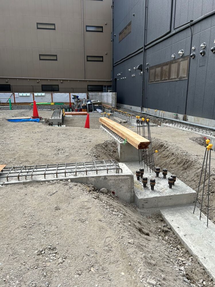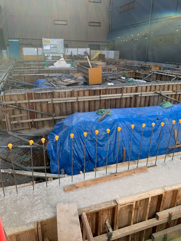 柱のコンクリートに芯が打ち込まれています 地固め作業は絵面がシンプル 年内の作業はこれで終了 来年の進捗を乞う…