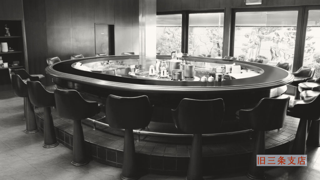 唯一無二の三条店オーバルカウンター席。