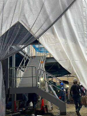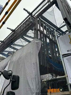 隣の建物との間に足場を立てています