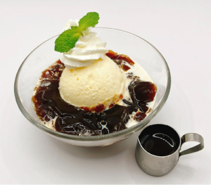 赤ワインと香味野菜でじっくり煮込んだ牛バラ肉と、マッシュルームの旨みが溶け込んだ濃厚なデミグラスソースを合わせました。コーンクリームコロッケと彩り豊かな温野菜を添えた、贅沢な一皿です。