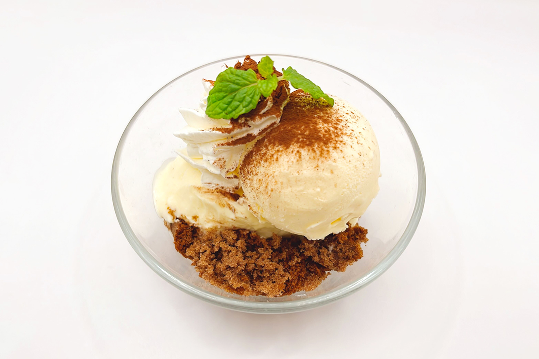 濃厚で口どけの良いティラミスにバニラアイスを添えたミニデザートです。 滑らかな口当たりのクリームチーズとコーヒーの苦味が特徴のティラミスはバニラアイスと相性抜群。