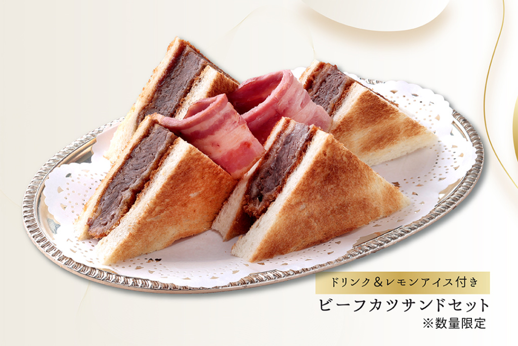 ビーフカツサンドセット 広島支店では土日祝限定でご提供している「ビーフカツサンド」を、3月5日より1週間限定特別セットで平日もお楽しみいただけます。